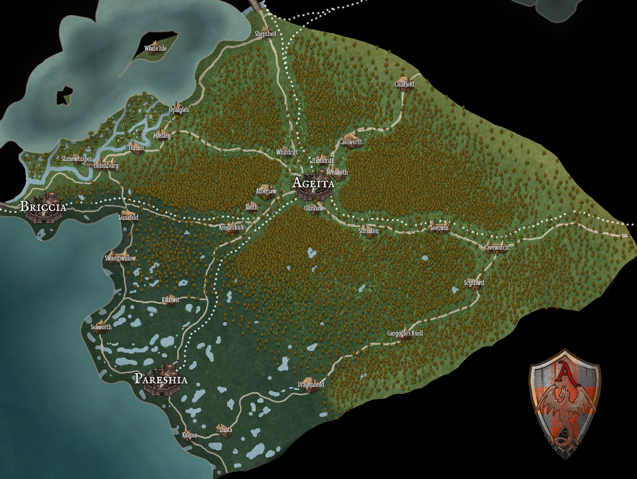 A map of the Severin Duchy in the Kingdom of Mare.