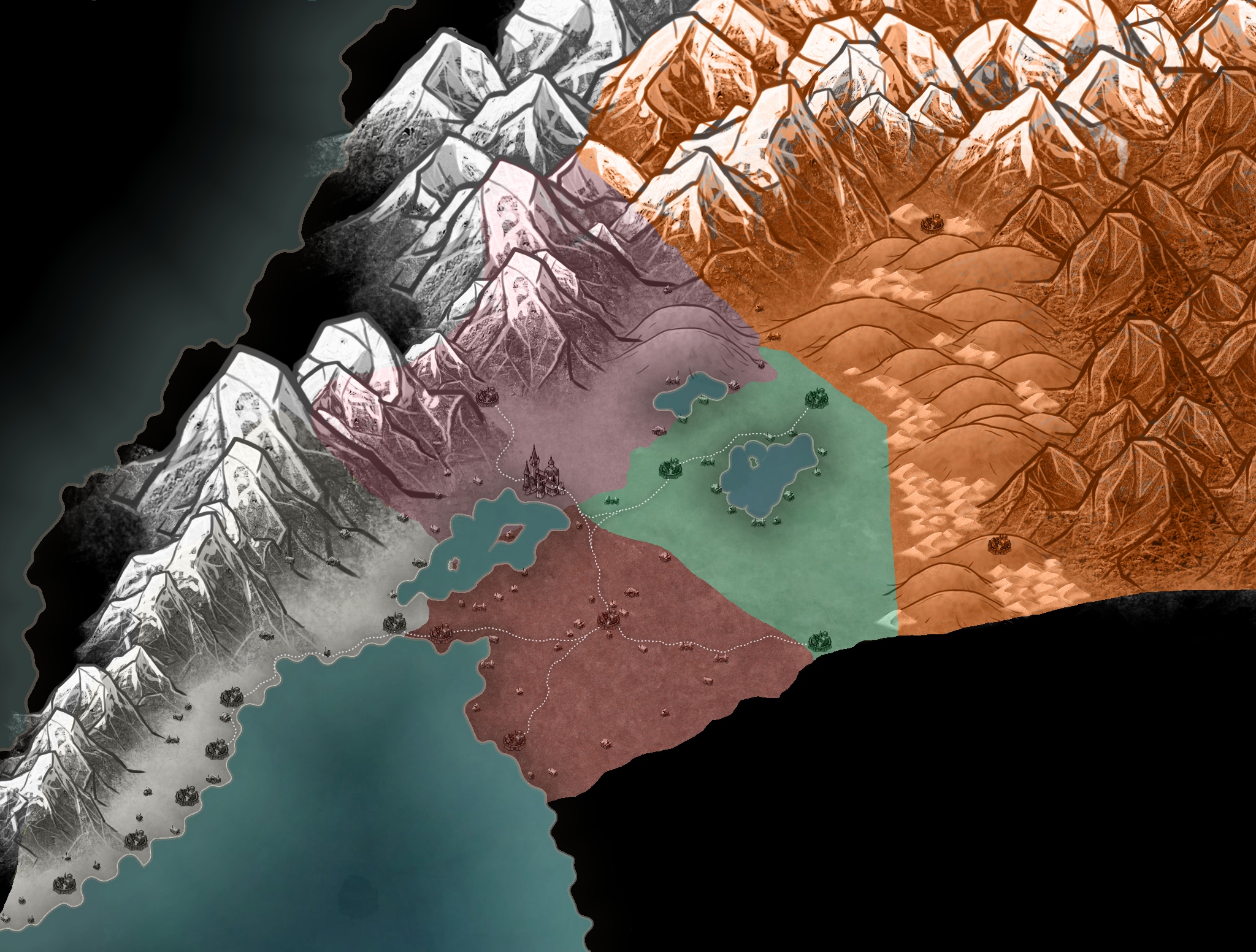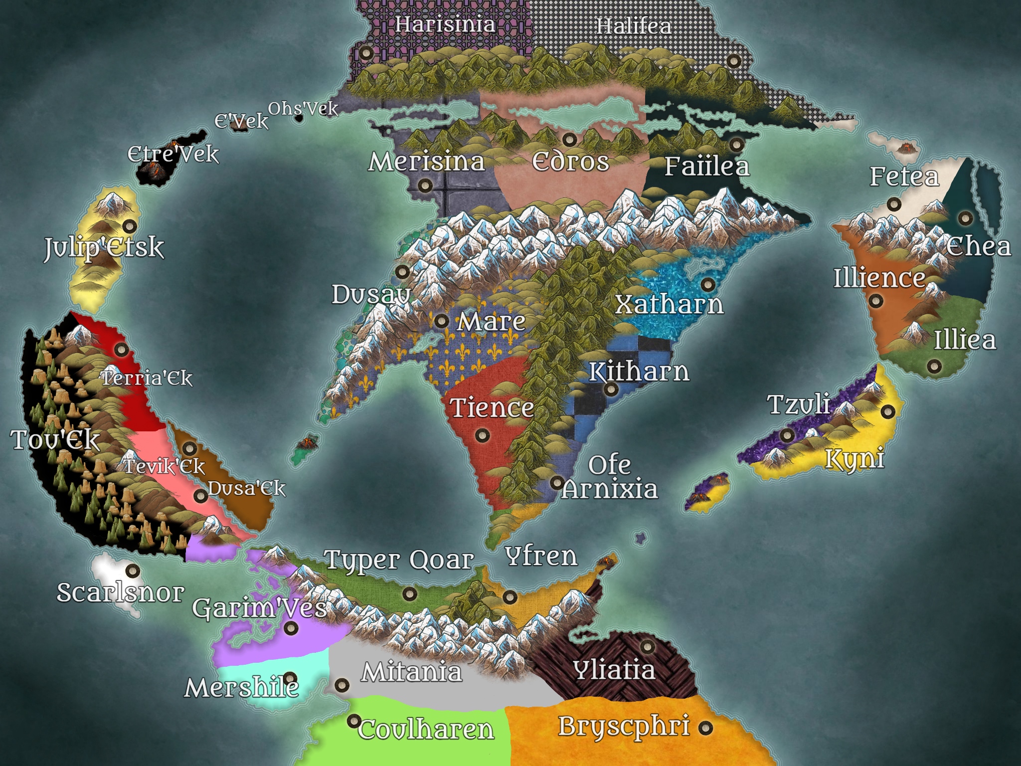 A map of the world of Bellianis with its nations overlaid onto it.